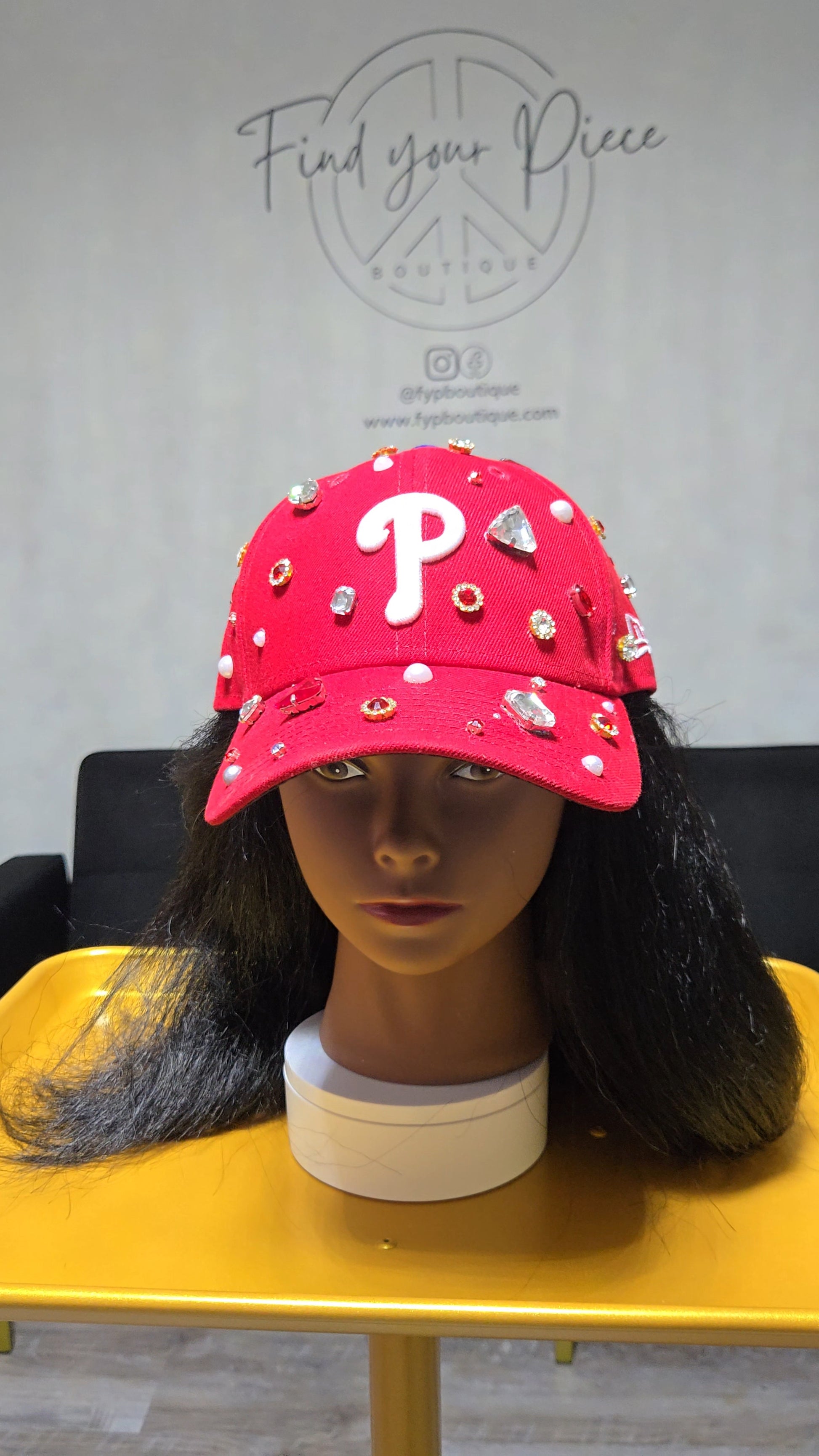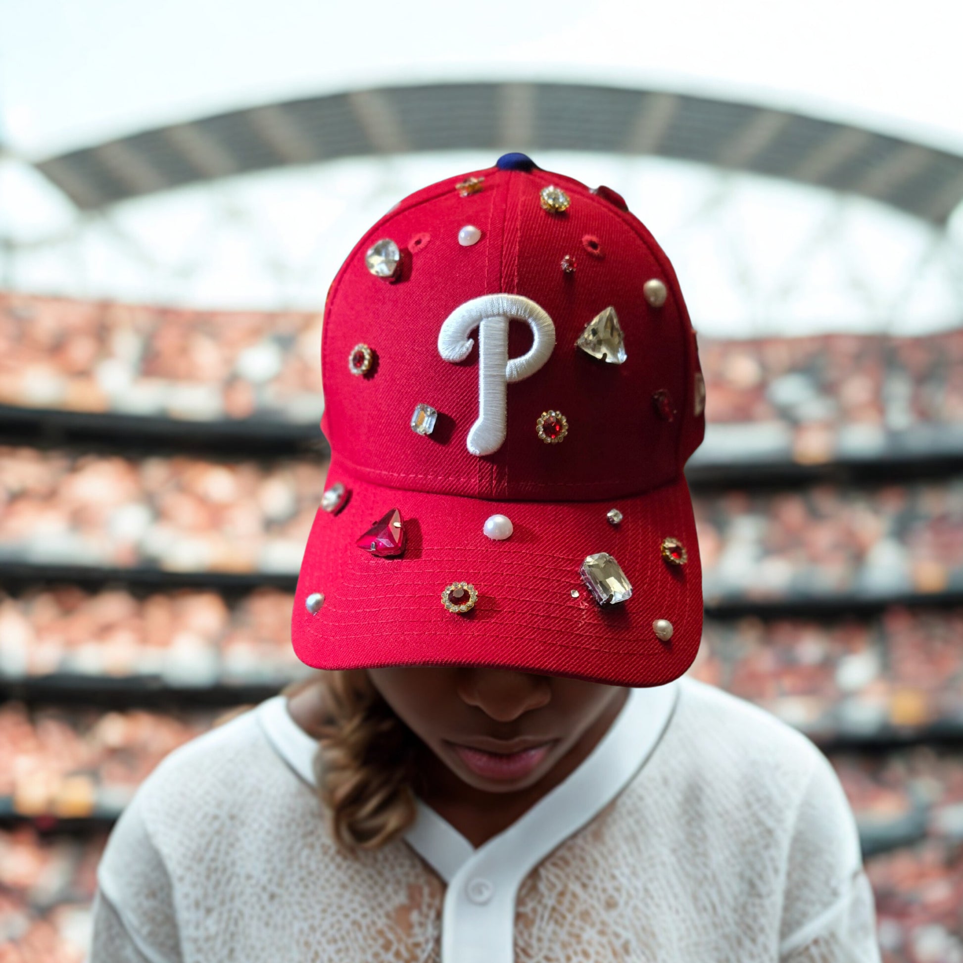 Custom made caps. Choose your favorite team and add bling. Prices vary based upon design.