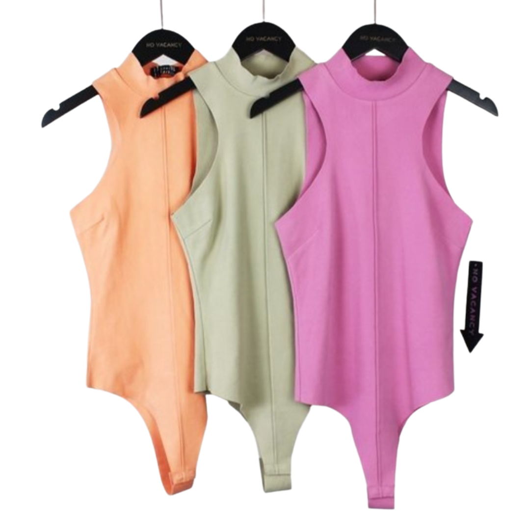 Thick Jersey bodysuit with raw hems. This item is very stretchy and runs true to size.