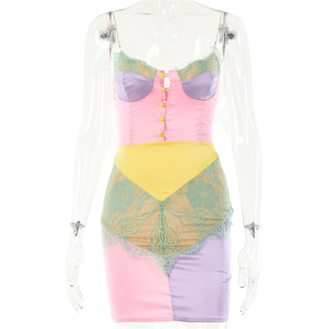 Satin & Lace Pastel Mini Dress