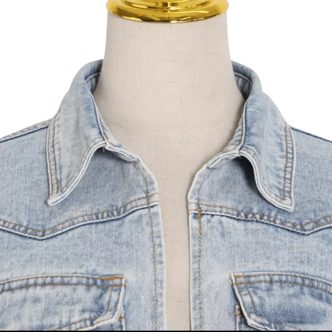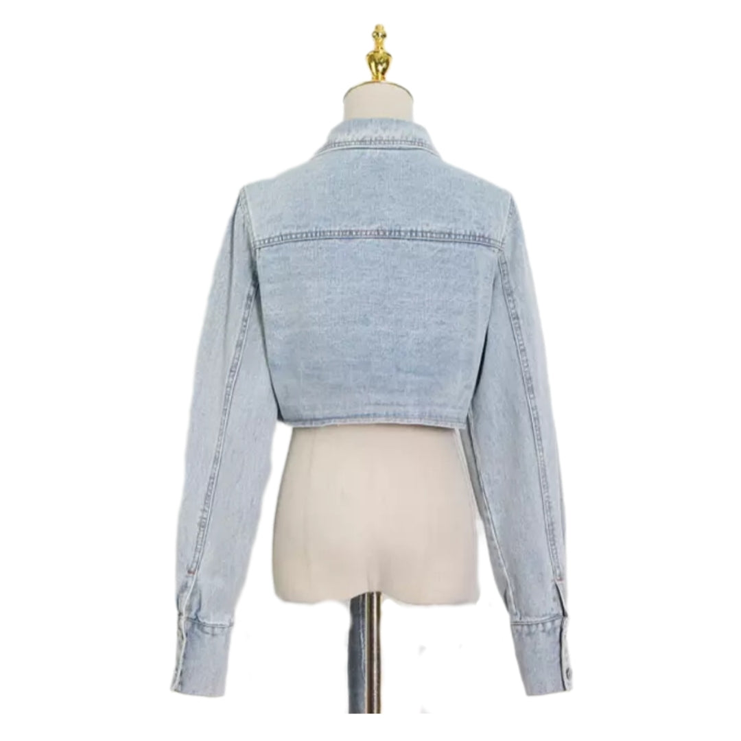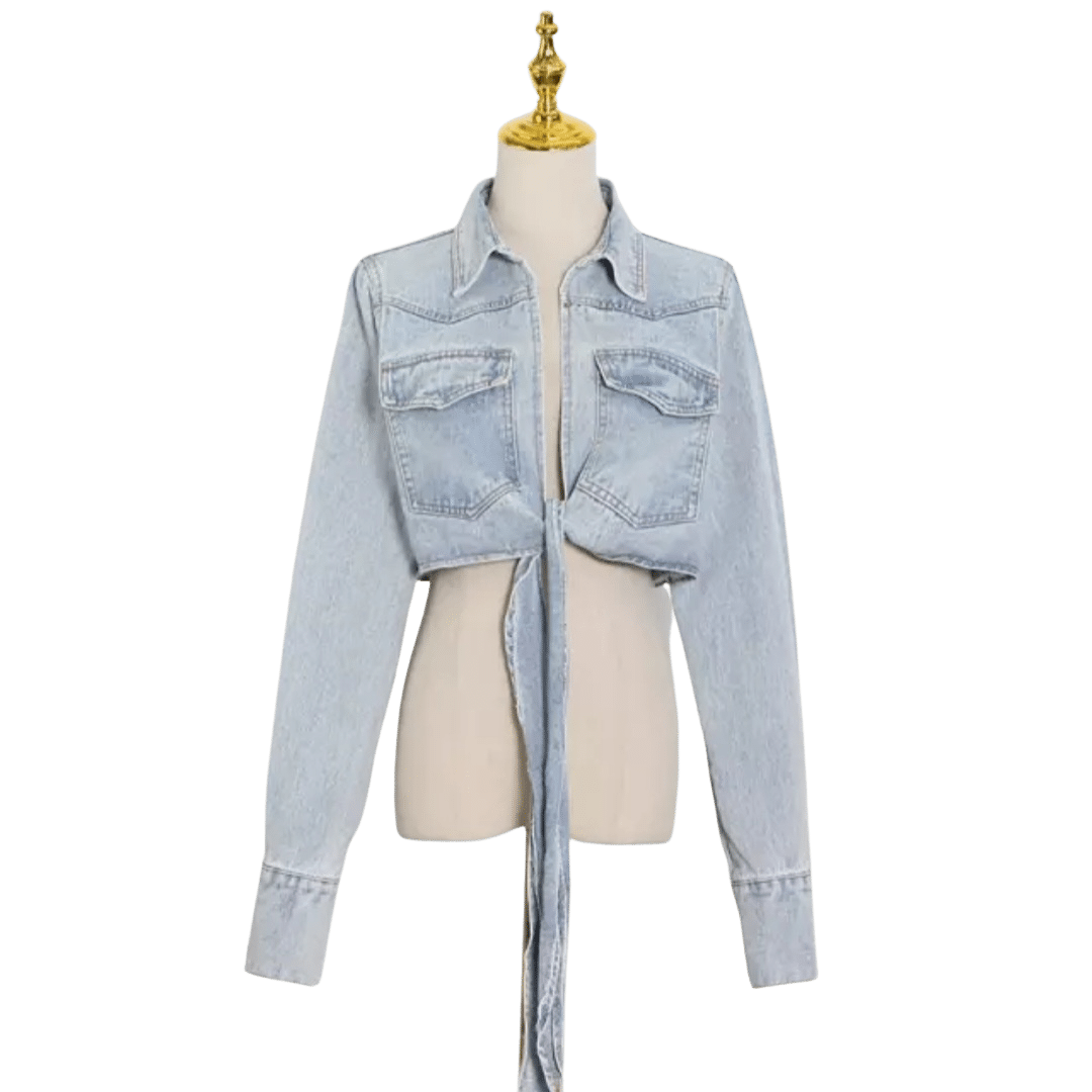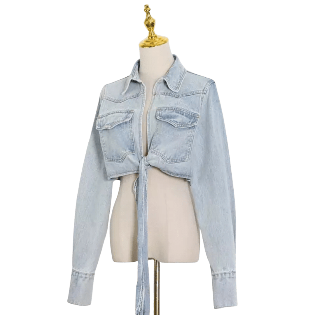 Tie Front Denim Jacket that will go perfect with any outfit.